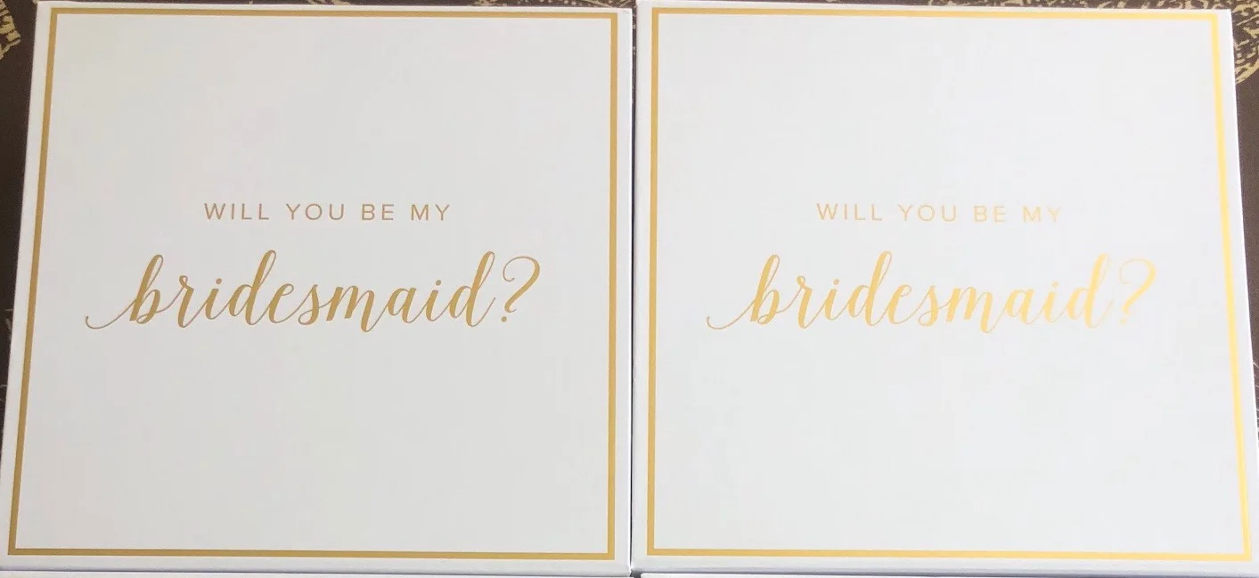 The final aspect of the proposal boxes that took the longest to find were the boxes themselves. I spent weeks looking for a box that was the right shape and size for their gifts. Then amazon, as usual suggested the perfect pack of bridesmaid proposal boxes that came in a pack of 5, it worked for me because I had 4 bridesmaids, but they also sell maid/matron of honor boxes separately if you have 6+ bridesmaids. They are a little on the pricey side, but they were so cute and nice quality and they have a magnet closure so they can even be used for the bridesmaid’s pictures and moments after the big day so I’d say they were definitely worth the money!